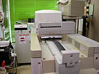 朝9時にサービスセンターへ電話をかけ、電話越しに指示どおりいろいろやってみたがどうもうまくいかない。結局店まで来てもらうことになり、修理してもらったところ、処理液の液面低下はなんとか直ったが、その他のところに故障が見つかり、部品を注文しなければならないので、明日にならないとプリント作業はできないとのことであった。でもこんなときに限って、いつもより多くお客さんがフィルムを持ってきたりするのはなぜだろう。気のせいか(^_^.) |