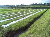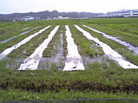 花木の畑がまた草ボウボウになってきたため、除草剤を散布してきた。まだ地面に水が溜まっているため、その水に除草剤がかかると、浸透して花木が枯れてしまうため、畦際だけの散布しかできなかった。せっかく溝を掘ってもらったのに、なかなか水が引かないのはどうしてだろう。まぁ近頃の大雨続きでは仕方ないか(^_^;) |