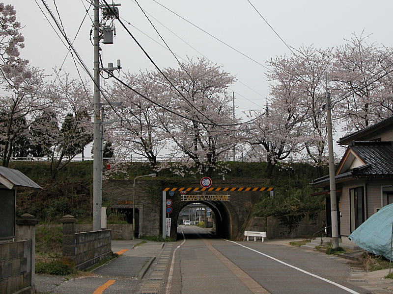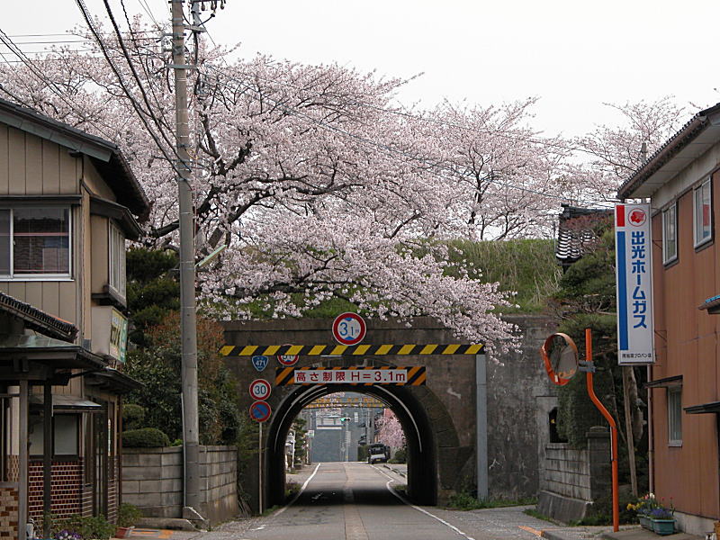 昔から氾濫を繰り返し、そのたびに堤防を築いていった結果、ついには天井のように高くなってしまい、川を渡るために、その下にトンネルを掘ってしまった「宝達川」。でもトンネルの高さが3.1mしかないなので最近ではトンネルに衝突したり、こすったりする大型トラックが続出して困っているらしい。実際トンネルの内部は、たび重なる修理のため、つぎはぎだらけになっている(+_+) |