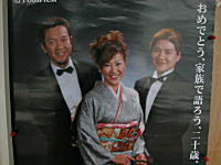 今日は写真撮影があった。お客さんは山崎地区にお住まいのTさん。東京の大学に行っており、成人式に帰ってこれないそうなので、撮影しておこうというものであった。やはり緊張する。3枚づつ3カット撮影し、違うカメラで押さえを撮って終了。いやー疲れる。しばらく放心状態。うまく写っているであろうか。現像は店でも出来るのであるが、万が一のことを考えて北陸フジカラー社へ依頼した。夕方には結果が分かるであろう。今度は9日にも撮影がある。緊張して眠れない日々が続く。 |