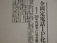 「2010年までにIP電話に切り替わりますので、無料で工事させていただきます。」との電話が某会社からあり、話をさせてくれと言って若い営業マンが2人家へやってきた。いろいろと説明してくれるのだがイマイチよく分からない。どうして無料なのかと聞くと、電話機の製造会社などがお金を出し合ってくれているからとのことであった。家の中の電話配線をいろいろ調べられ、その後IP電話は家にボックスを設置しなければならないということになり、「リース料は普通なら5,800円ですが、当社は4,800円です。」とか「その他の料金も当社はすごく安いです。」と言ってきた。何だか怪しいと思い「とりあえず工事だけでいいよ」と言うと怪訝そうな顔をしていたが、結局引き上げていった。工事の日取りはのちほど連絡するということである。後でこの会社をネットで調べてみたところそんなに怪しい会社ではなさそう。でもどうも変だと感じてしまうのであった(ーー゛) |