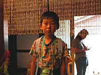 またしても弘彦とプールへ行った。今日は志賀町の「sion(シオン)」。ここは温泉とプールが併設されていて、レストランで生ビールも飲めるというなかなか良いところである。プールには流れるプールがあって、昨年来たときは弘彦は足が着かなかったのだが、今回はちゃんと足が着くようになっていた。やはり少しは成長しているようである。プールの帰りにホームセンターで野球のグローブを買いに行ったが、そこでカブトムシのコーナーを発見し、オスとメスをペアで買わされてしまった。別に買わなくても、もうしばらくすると家の中に飛んできたり、近くの木にとまっていたりするになぁ。お母さんにまかせっきりじゃなくてちゃんと世話しろよ(-_-;) |