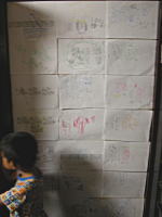 最近弘彦が自分で怪獣のキャラクターを考えて描いているので、ちょっと壁に貼り出してみた。ところが3分おきぐらいに次々と描きあげてしまうので、すぐに壁がいっぱいになり隣の壁にも貼り出さなければならないほどの数になってしまった。まぁよくこれだけの怪獣を思いつくものである。それに「ジャンガール」や「ゲンガール」、「バリネンザー」、「ブレイスバンガー」とか英語っぽい名前までつけてある。絵を見てみるとなんだか悪そうな怪獣ばかりなので、良い怪獣も描いてみればと言ったところ、「なんでもなおすろぼっと」、「しゃしんてつだいろぼっと」と急に日本語の名前になってしまった。なんでやねん(^O^) |