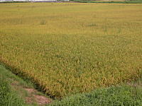 田の水を抜くため全部の田を回り、水を止めてある気をはずしたり、暗渠パイプのキャップを抜いた。この作業を早めにやっておかないと、田が固くならないので稲刈りのときにコンバインがはまってしまうのである。もしはまってしまうと稲刈りの労力の10倍ぐらい体力を使うので、田の固さにはかなり気を使う。しかし、あんまり田に水がないと米は乳白色米になってしまうのでここらへんの加減が難しい。今年の弘宝米の生育は順調である。昨年の今日は台風がやってきて稲が倒伏してしまい、未熟米だらけになってしまった。でも今年はあと2週間ぐらいこの調子でいけば豊作はまちがいなさそうである。台風絶対来るなよ(−−〆) |