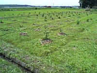 花木の畑の草取りをした。以前に除草剤を散布したのだが、効いていないところがあって、すごい草丈になっていた。やはり木の周りは手できちんと刈らないとだめらしい。でも結構時間がかかるので、このぶんでは3日ぐらいは必要となりそうである。蒸し暑いし厳しいなー(T_T) |