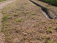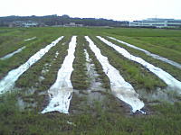 花木の畑がまた草ボウボウになってきたため、除草剤を散布してきた。まだ地面に水が溜まっているため、その水に除草剤がかかると、浸透して花木が枯れてしまうため、畦際だけの散布しかできなかった。せっかく溝を掘ってもらったのに、なかなか水が引かないのはどうしてだろう。まぁ近頃の大雨続きでは仕方ないか(^_^;) |