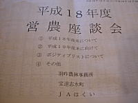 「営農座談会」に出席してきた。内容は今年の米の生育・収量の状況と来年の注意事項だったが、そういえば今年は春先に低温が続いたせいで、苗が植えた後に枯れそうな感じになって心配したことを思い出した。なんとかその後の天候の回復により持ち直したが、もしそのままの天候が続いていたらと思うとぞっとするなぁ( ̄□ ̄;) |